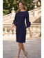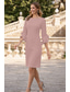 Φορέματα Cocktail Sheath Μινιμαλιστικό Φόρεμα Cocktail Πάρτι Γόνατο Μήκος 3/4 Μήκος Μανίκι Jewel Neck Φθινόπωρο Καλεσμένος Γάμου Σατέν με Ράστες Φορέματα