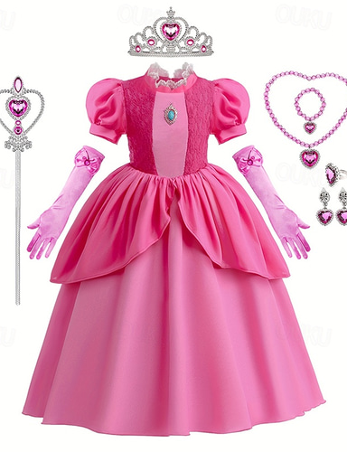 Πριγκίπισσα Ροδάκινο Φορέματα Γάντια Κορώνα Μοτίβο φόρεμα Στολή Cosplay for Κοριτσίστικα Παιδικά Η Μέρα των Παιδιών Μασκάρεμα