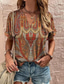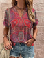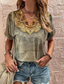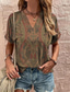 Γυναικείο Μπλούζα Boho Ανθισμένο Γραφικό Paisley Μποέμ Vintage Τροπικό 3/4 Μανίκι V Λαιμό Κανονική Μπλούζες Λευκό Πράσινο Καλοκαίρι Άνοιξη