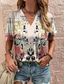Γυναικεία Μπλούζα Κουμπιά Στάμπα Φλοράλ Γραφική Βίντατζ Στυλάτο Μοντέρνα Μισό μανίκι Κολάρο Πουκαμίσου Κανονικά μπλουζάκια Causal Καθημερινά Ανθισμένο Ροζ Ανοικτό Βυσσινί Χακί Καλοκαίρι Άνοιξη