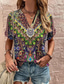 Γυναικεία Μπόχο πουκάμισο Γραφική Αφηρημένο Κομψό Βοημία Ενεργό Κοντομάνικο Μανίκι Νυχτερίδα Στρογγυλή Ψηλή Λαιμόκοψη Κανονικά μπλουζάκια Καθημερινά Αργίες Ρούχα παραλίας