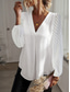 Γυναικεία Πουκάμισο Μπλούζα Δαντέλα Κουρελού Συμπαγές Χρώμα Στυλάτο Καθημερινό Μακρυμάνικο Λαιμόκοψη V Κανονικά μπλουζάκια Καθημερινά Λευκό Καλοκαίρι Άνοιξη