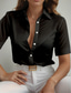 Γυναικεία Πουκάμισο Κομψή Φιλάρεσκος Σατέν Μπλούζα Κουμπιά Συμπαγές Χρώμα Δουλειά Μοντέρνα Καθημερινό Μακρυμάνικο Κολάρο Πουκαμίσου Κανονικά μπλουζάκια Δουλειά Επίσημο ένδυμα