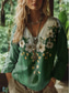 Γυναικεία Πουκάμισο Φλοράλ Γραφική Βίντατζ Στυλάτο Μακρυμάνικο Μακριές μπλούζες Causal Καθημερινά Αργίες Θαλασσί Πράσινο του Γρασιδιού Σκούρο πράσινο Καλοκαίρι Άνοιξη