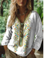 Γυναικεία Μπλούζα Σουρωτά Κεντητό Στάμπα Φλοράλ Γραφική Λαχούρι Βοημία Βίντατζ Τροπικό 3/4 Μήκος Μανικιού Λαιμόκοψη V Κανονικά μπλουζάκια Μαύρο Λευκό Καλοκαίρι Άνοιξη