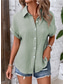 Γυναικείο πουκάμισο Με κουμπιά Μπλούζα Ενιαίου χρώματος Vintage Τροπικό Μοντέρνο Κοντό μανίκι πουκάμισο Με κουμπιά Με γιακά Κανονικά Τόπς Εργασία Καθημερινά Ναυτικό άσπρο ανοιχτό πράσινο βερίκοκο