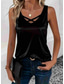 Γυναικεία Σατέν γραβάτα μπροστά Κομψό Βίντατζ Στυλάτο Αμάνικο Λαιμόκοψη V Κανονικά μπλουζάκια Causal Καθημερινά Μαύρο Λευκό Χρυσό Καλοκαίρι Άνοιξη