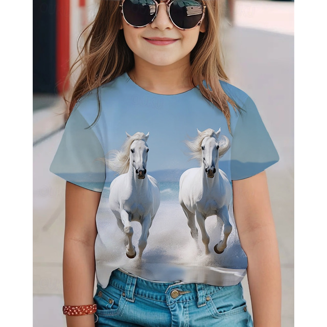 Κοριτσίστικα 3D Άλογο Κοντομάνικη μπλούζα Κοντομάνικο Κοντομάνικο Καλοκαίρι Άνοιξη Μοντέρνα Βασικό Παιδιά 4-12 χρόνια Στρογγυλή Ψηλή Λαιμόκοψη ΕΞΩΤΕΡΙΚΟΥ ΧΩΡΟΥ Causal Καθημερινά Κανονικό 2026 - US $11.99 –P2