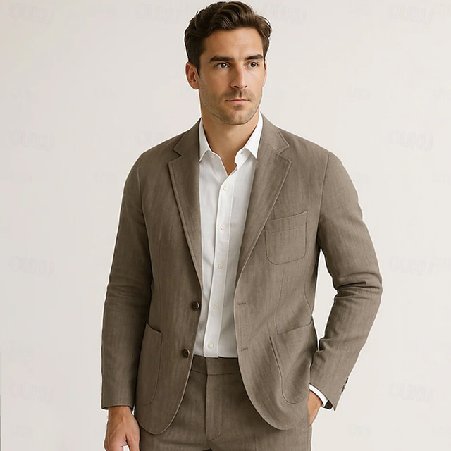 Ανδρικά Μπουφάν μπλέιζερ Γάμου Επέτειος Πάρτι Καλοκαίρι Άνοιξη Λινό Συμπαγές Χρώμα Μονόπετο Ενός Κουμπιού Χρωματιστή ζακέτα Σκούρο γκρι Μαύρο Βαθυγάλαζο Θαλασσί 2026 - US $50.99 –P1