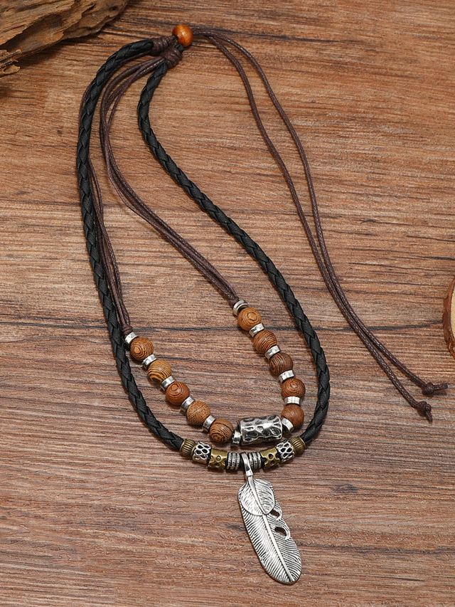 Ανδρικό vintage κολιέ με φτερά και τιρκουάζ χάντρες – κοσμήματα από δερμάτινο σχοινί σε φυλετικό στιλ για φεστιβάλ, ταξίδια και καθημερινή χρήση 2026 - US $8.99 –P1