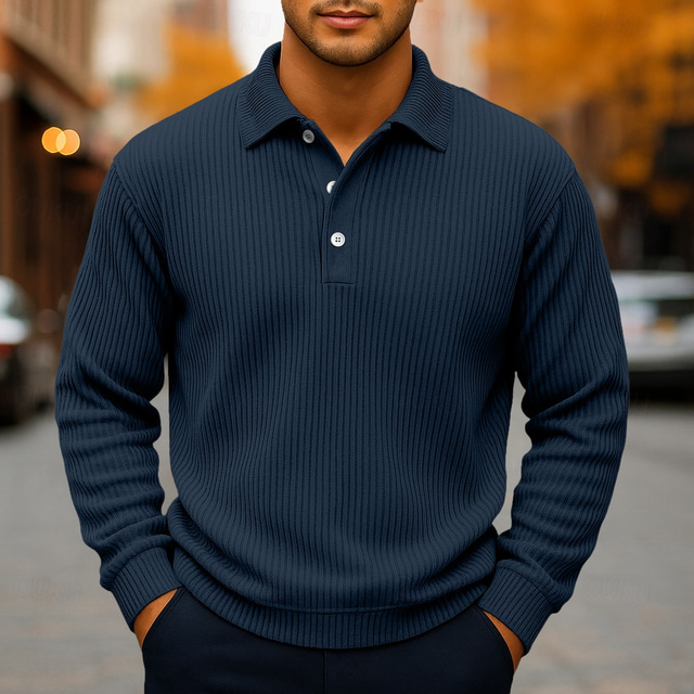 Ανδρικά Πόλο Κοτλέ πουκάμισο Causal Αθλητικά Πέτο Μακρυμάνικο Μοντέρνα Βασικό Συμπαγές Χρώμα Με Υφή Κουμπιά Ζεστό Φθινόπωρο Άνοιξη & Χειμώνας Κανονικό Μπλε Σκούρο μπλε Γκρίζο Χακί Πόλο