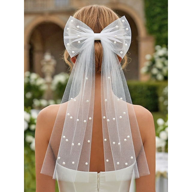 Γυναικείο κομψό πέπλο γάμου από τούλι σε σχήμα πεταλούδας με χάντρες από ψεύτικες πέρλες, νυφικό κόσμημα κεφαλής από πλέγμα σε πολλά χρώματα για επίσημα βραδινά πάρτι και γάμους, αξεσουάρ μαλλιών για χορό και ειδικές εκδηλώσεις 2026 - US $9.99 –P5