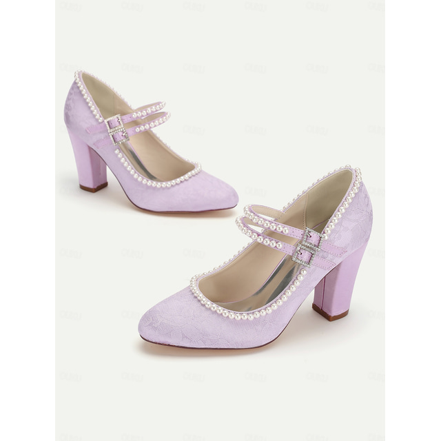 γυναικείες μωβ δαντέλες mary jane heels - μπλοκ γόβες διακοσμημένες με πέρλες για γάμους, πάρτι και κομψές περιστάσεις 2026 - US $74.99 –P5