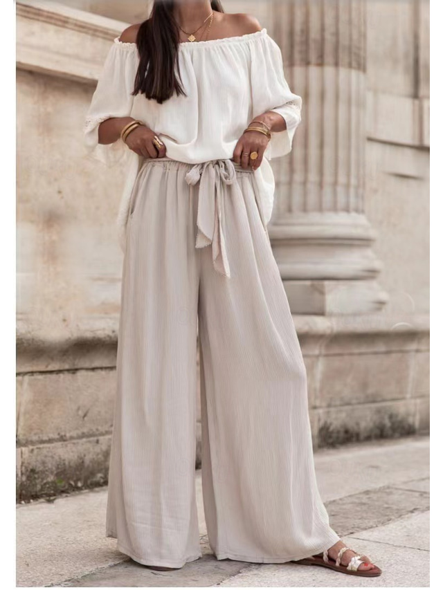 Φύλο: Γυναικεία, Είδος Παντελονιού: Παντελόνι Palazzo, Στυλ: Καθημερινά, Περίσταση: Causal, Εξόδου, Ύφασμα: Μείγμα Πολυέστερα / Βαμβακιού, Σχέδιο: Πόδι εκκίνησης, Λεπτομέρειες: Περιλαμβάνεται Ζώνη, Τύπος Μέσης: Ψηλοκάβαλο, Ελαστικότητα: Ανελαστικό, Μήκος παντελονιού: Πλήρες μήκος, Χρήση: Άνετο, Είδος εφαρμογής: Κανονικό, Ειδικό μέγεθος: Μέγεθος EU / US, Τύπος πτήσης: Ελαστικότητα, Μοτίβο: Μονόχρωμο, Εποχή: Όλες οι εποχές,