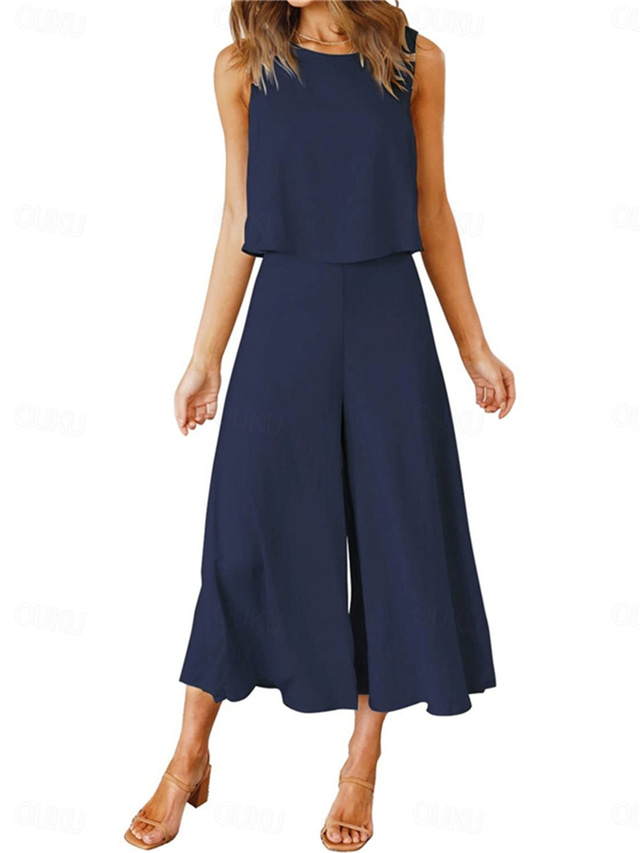 Γυναικεία Αμάνικη Μπλούζα Φαρδύ παντελόνι Αμάνικο Στρογγυλή Ψηλή Λαιμόκοψη Σκέτο Βασικό Causal Σαββατοκύριακο Μαύρο Ανθισμένο Ροζ Βαθυγάλαζο Καλοκαίρι Κανονικό