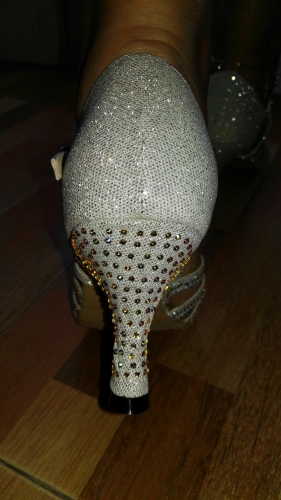 Pantofii sunt foarte frumosi, arata mult mai bine ca in imagine, iar pietricelele stralucesc frumos si sunt bine lipite. Sunt potriviti pentru o talpa de latime normala. O singura problema an intalnit la ei: bareta e cam scurta si merge prinsa mai bine pe glezna, nu in jurul labei piciorului ca in imagine. Pantofii sunt foarte frumosi, arata mult mai bine ca in imagine, iar pietricelele stralucesc frumos si sunt bine lipite. Sunt potriviti pentru o talpa de latime normala. O singura problema an intalnit la ei: bareta e cam scurta si merge prinsa mai bine pe glezna, nu in jurul labei piciorului ca in imagine.
