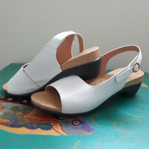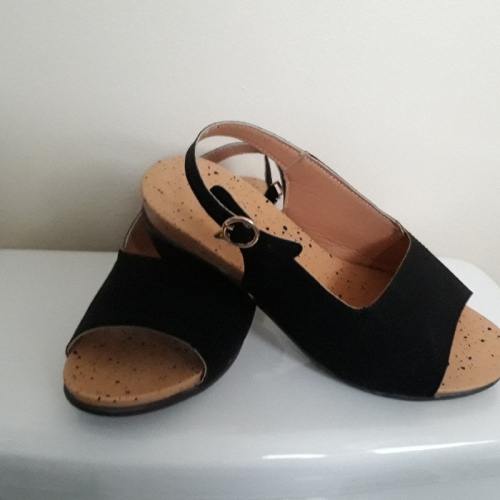 I love these shoes i got 3 colors black, blue, light tan they are so cozy heel is wonderful about 2 inches with the upper sole you feel great when you walk the buckel is made very different took me about 2 minutes to see how they would be ok so they dont come appart when walking wish elastic where blue and tge beige ones were beige elastic as for the black it was black elastic that was ok ...for the price i paid of each 10$ i paid it was a fantastic price i took size 37 as my feet are 6.5.
