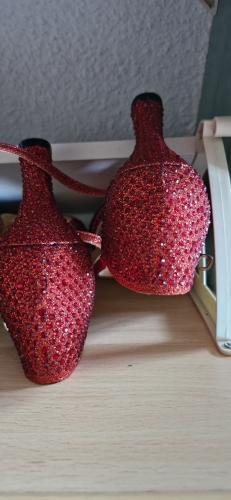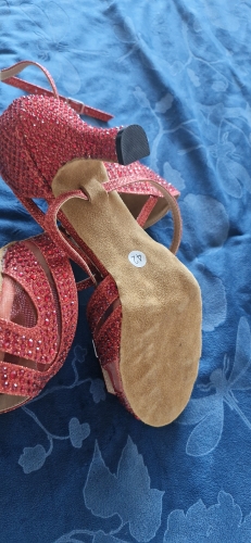 Tres belle chaussure de danse....trés brillante.....semelle intérieure bien épaisse,trés confortable.Un " petit " regtret,chaussure commandée en 37.......peut être aurais-je du les commander en 38 et compenser avec une 1/2 semelle,car,chaussure assez serrée en largeur de pied.A voir a lusage.La chaussure serre un peu mais de façon raisonnable.Satisfaite malgré tout,mais mise en garde pour une danseuse ayant un pied un peu " large ". Tres belle chaussure de danse....trés brillante.....semelle intérieure bien épaisse,trés confortable.Un " petit " regtret,chaussure commandée en 37.......peut être aurais-je du les commander en 38 et compenser avec une 1/2 semelle,car,chaussure assez serrée en largeur de pied.A voir a lusage.La chaussure serre un peu mais de façon raisonnable.Satisfaite malgré tout,mais mise en garde pour une danseuse ayant un pied un peu " large ".