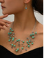 סט תכשיטי קריסטל ירוקים לנשים עם שרשרת דמעות ועגילים תואמים, סגנון אלגנטי לחתונות ואירועים רשמיים
