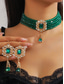 מסכת נשף ירוקה לנשים עם תחרה שחורה ופרטי אבני חן למסיבת חג המולד ונשף &קרנבל