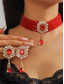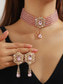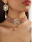 סט קולר חרוזים זהב שמפניה לנשים לחתונה או מסיבת ערב
