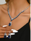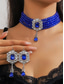 סט תכשיטי קריסטל כחול לנשים - שרשרת טיפה אלגנטית עם ריינסטון ועגילי טיפה למסיבה, ערב ואירועים רשמיים