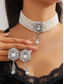 ערכת תכשיטים ותכשיטים מנזר כסף ריינסטון כסף - שרשרת אלגנטית, עגילים וכתר לחתונות, תחרויות ואירועים מיוחדים