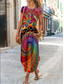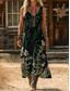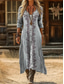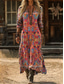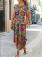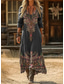 בגדי ריקוד נשים שמלה ארוכה שמלת מקסי שמלת קז'ואל שמלה משוחררת שמלת קיץ שמלת בוהו וינטאג' חופשה יומי חגים רגיל גראפי שרוול ארוך צווארון V שחור קיץ