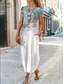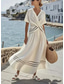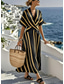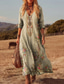 שמלת מקסי דמוית כותנה פשתן לנשים שמלת קיץ שמלת עטיפה שמלת קו A שמלת קיץ חופשה מסיבה קז'ואל יומי משרד חוף גרפי גיאומטרי חצי שרוול צווארון V כחול שחור לבן שנהב קיץ