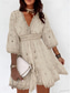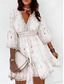 בגדי ריקוד נשים שמלת מיני שמלה לבנה שמלת תחרה שמלת כלה תחרה לבנה שמלת בוהו קלסי מודרני יומי רגיל שרוול 4\3 צווארון V לבן משמש קיץ אביב