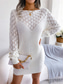בגדי ריקוד נשים סוודר מסוגנן יום יומי רך צבע אחיד מצולע צווארון עגול קצר טלאים שרוול ארוך חולצות ארוכות לִסְרוֹג יומי ליציאה סוף שבוע לבן ורוד מסמיק סתיו חורף