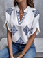 חולצת נשים עם צוואר V עיצוב גרפי גיאומטרי אופנתית חוף שרוול קצר טופים רגולים לבוש יומי הדפס כחול קיץ אביב