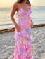 בגדי ריקוד נשים שמלת מידי שמלת סליפ אופנתי סוף שבוע שמלת קיץ רגיל פרח ללא שרוולים רצועות ספגטי פול אודם חום קיץ