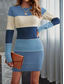 בגדי ריקוד נשים סוודר יום יומי רך פסים מצולע צווארון עגול קצר סרוג שרוול ארוך חולצות רגילות לִסְרוֹג בָּחוּץ יומי סוף שבוע כחול ים כתום סתיו חורף