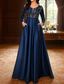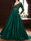 גזרת A עד הריצפה שמלת אורח לחתונה שמלה רשמית שמלת פלייר שמלה לאם הכלה שרוול ארוך צווארון V סקופ צוואר אלגנטית נוצץ וזוהר רשמי ערב רישמי מסיבת החתונה טול עם פרטים מקריסטל