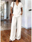 בגדי ריקוד נשים חולצה כפתור למעלה פשתן כותנה דמוי עור כפתורים צבע אחיד מסוגנן יום יומי שרוולים קצרים צווארון חולצה חולצות רגילות יומי פול לבן קיץ אביב