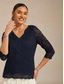 בגדי ריקוד נשים חולצת תחרה חולצה תחרה צבע אחיד אלגנטית מסוגנן שרוול 4\3 צווארון V חולצות רגילות יומי עבודה כחול נייבי קיץ אביב סתיו