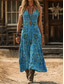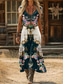 בגדי ריקוד נשים שמלת מקסי שמלת בוהו שמלת וינטג' שמלת קז'ואל וינטאג' רגיל פרחוני ללא שרוולים צווארון V פול שחור ולבן תלתן קיץ אביב