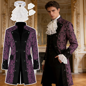 רוקוקו ימי הביניים רנסנס מעיל תחפושת מפוארת צווארון רף שרוולים ארוכים אָצִיל לבוש מלכותי תחפושות בגדי ריקוד גברים פנטזיה האלווין (ליל כל הקדושים) קרנבל הצגה LARP רן פייר מבוגרים מעיל צווארון