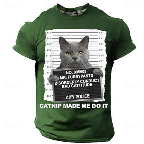 בגדי ריקוד גברים חתול סלנג מצחיק חולצה קצרה שרוולים קצרים חולצה קצרה הדפסת תלת מימד צווארון עגול קצר חולצה אופנתי יומי יומי רחוב פול שחור אודם קיץ אביב ביגוד S M L XL XXL XXXL