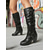 מגפיים שחורים לנשים מעור מלאכותי עד הברך עם רצועות אבזם ועקבים בלוק - מגפיים אופנתיים לסתיו-חורף, ללבישה יומיומית, סגנון רחוב ותלבושות קז'ואל
