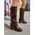 מגפי רכיבה חומים לנשים בגובה הברך עם רוכסן צד וקצוות קלועים - מגפי דמוי עור בסגנון רכיבה מערבי קלאסי לנשים, לחורף ולשימוש חיצוני ולשימוש יומיומי