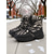 מגפי אופנוענים שחורים ועבים לנשים מעור דמוי עור, עם שרוכים ואבזם, מושלמים לחיי לילה בהשראת פאנק ומסיבות אופנתיות