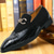נעלי גברים מלאכותיות חום מזומש עם אבזם מתכת - נעלי החלקה קלאסיות לנוחות יומיומית