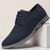 נעלי ספורט דמוי עור דמוי ניילון כחולות לגברים - עיצוב נוח להחליק עם פרטי עור מלאכותי, אידיאלי לטיולים מזדמנים, ללבוש יומיומי ולחופשות סוף שבוע