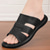 סנדלי עור מלאכותי שחורים לגברים - נעלי קיץ פתוחות עם עיצוב רצועות צולבות וסוליה נוחה ללבוש קז'ואל חיצוני