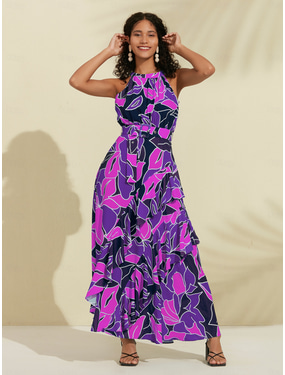 שמלת מקסי פרחונית עם שכבות וגבעות משיפון