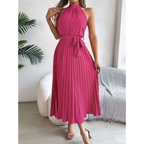 שמלת מידי לנשים שמלת עוטפת שמלת A-Line שמלת קפלים שמלת הולטר חופשה חופשה קזual יומית גזרה רגילה גרפית בלי שרוולים צווארון הולטר שחור ורוד יין ירוק קיץ