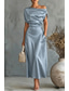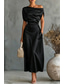 בגדי ריקוד נשים שמלת מקסי שמלת סאטן אלגנטית יומי מִשׂרָד חופשה רגיל אחיד שרוולים קצרים סירה מתחת לכתפיים שחור כחול כהה תלתן אביב