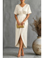 בגדי ריקוד נשים שמלת מקסי שמלת קז'ואל שמלה עם כיווץ במותן מסוגנן בסיסי יום יומי חופשה יומי רגיל אחיד חצי שרוול צווארון V תלתן בז' קיץ אביב